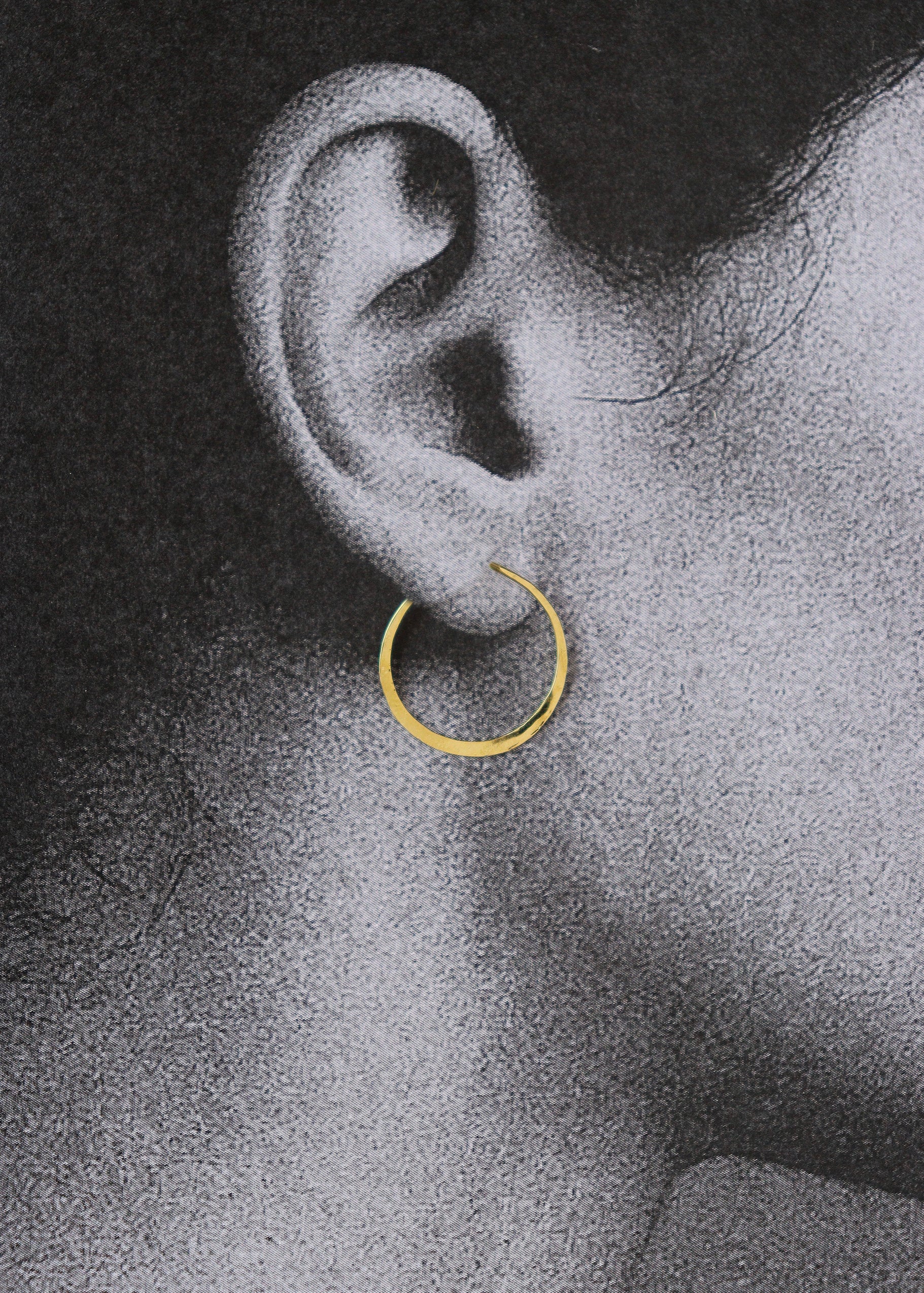 These yellow Fairmined 18k gold earrings are hand-forged to give them their fine shape. They are small and perfect for everyday wear. The idea is to be able to combine the different earrings in the collection.
