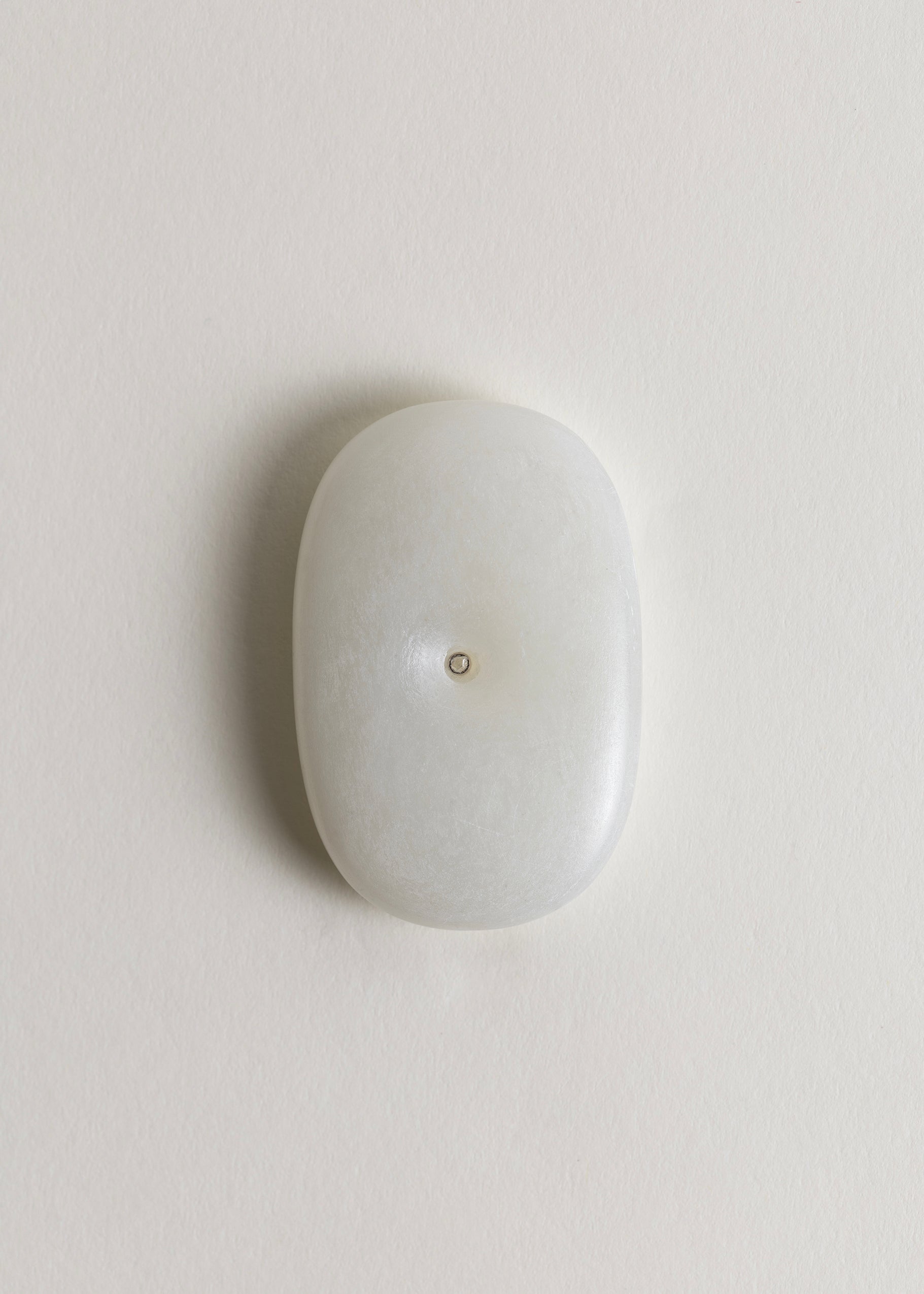 When we finished modelling all the pieces in the exhibition, we realised how pleasurable it had been to work with talc. It being the softest mineral on the Mohs scale proved to be ductile but dense, very soft and unctuous. But these pieces could only be touched by those of us who worked on them. The public at the exhibition could not. So this delicate object was born, a hand piece, made to be touched, like the worn bar of soap, like the pebble you pick up on the beach, put in your pocket and caress every time you put your hand in your coat.
