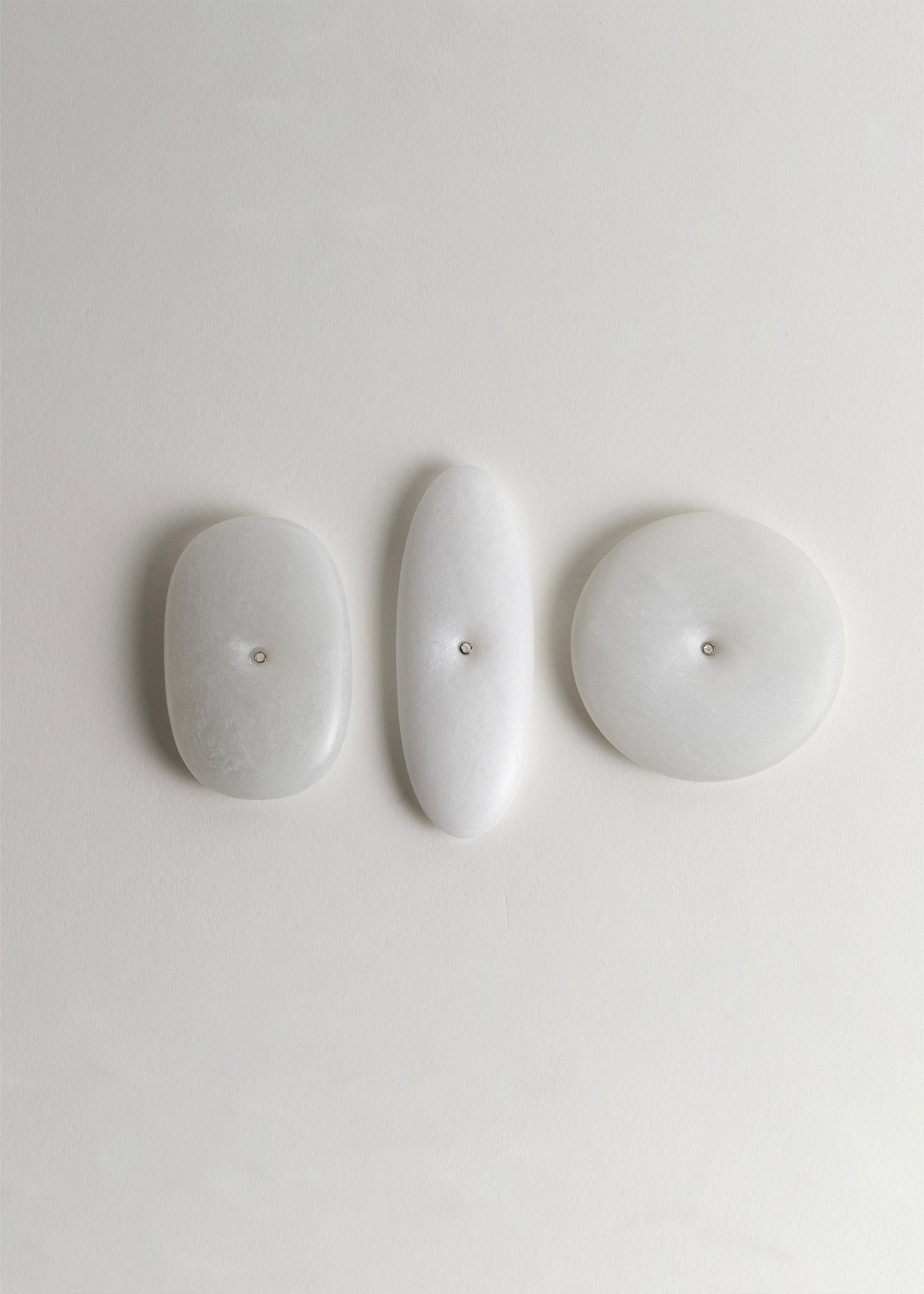 Handschmeichler is a series of unique pieces that belong to my solo exhibition, Children and Fools, at Chiquita Room gallery in Barcelona from September 2023. The main piece in this exhibition is Ser Nadie, an art installation that takes the form of a jewellery set made entirely of talcum powder. It is a forceful but very delicate work, as talc is a fragile mineral.